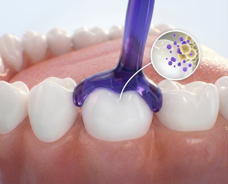 Die ultravioletten Farbpigmente neutralisieren den Gelbstich in den Zähnen.